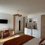 Appart-Hotel Rouillac의 룸은 커피 및 티 메이커, 위성 채널이 있는 평면 TV, 다채널 TV도 제공됩니다.
